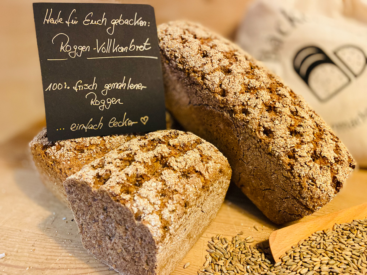 Übrigens, das Mehl für unsere Vollkornbrote vermahlen wir frisch auf unserer eigenen Mühle.